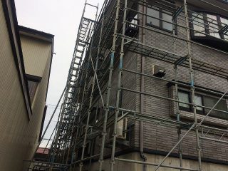 外周全ての外壁を撤去するので、足場も4方向全て囲います。